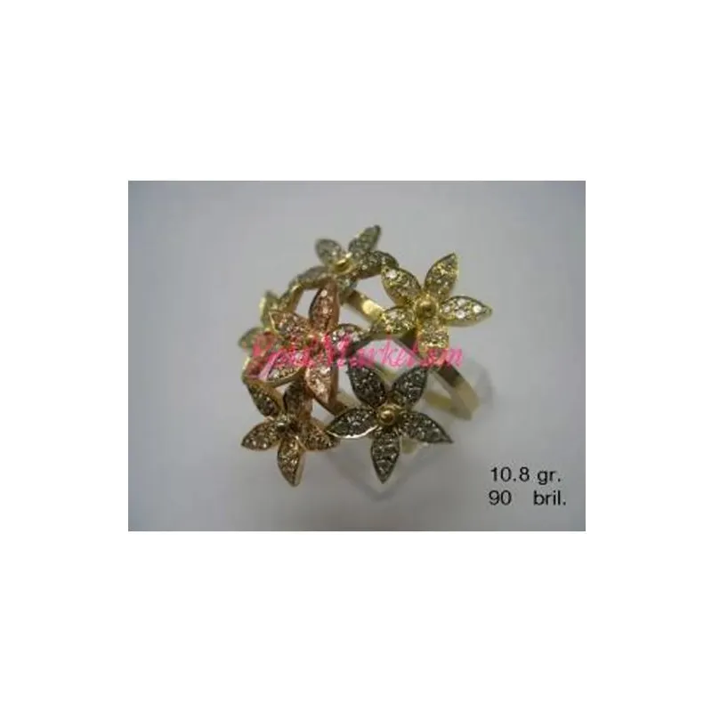 Մատանին պատրաստված է դեղին, սպիտակ և կարմիր ոսկուց, քարերը` ադամանդ